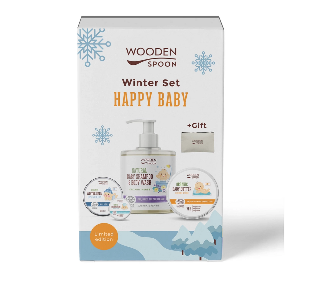 Зимен бебешки сет с любимите продукти Wooden Spood + подарък памучен несесер