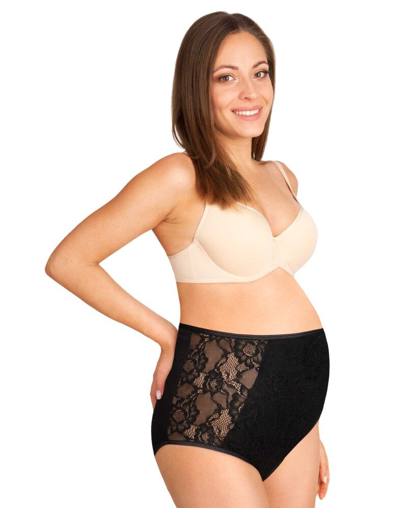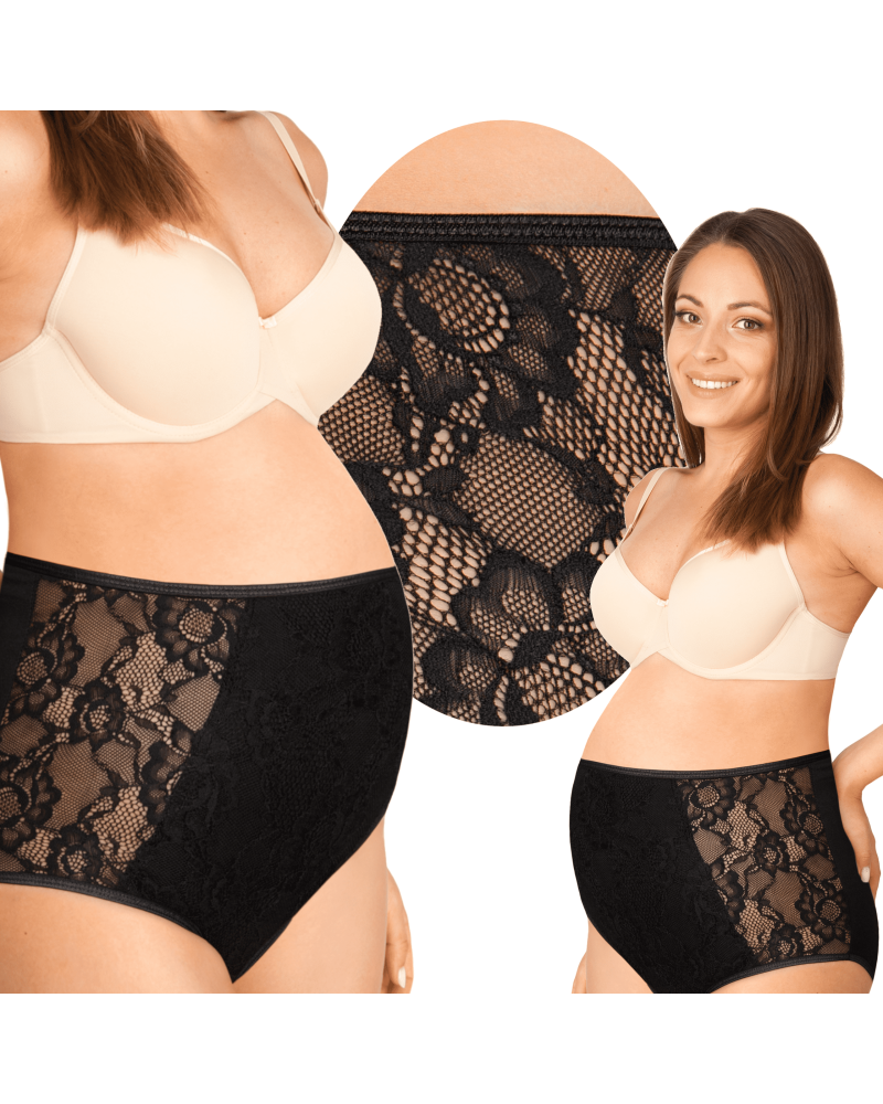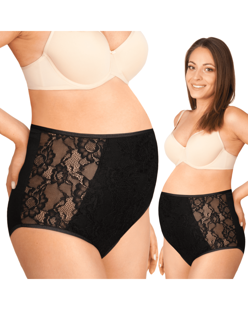 Памучни бикини за бременни с висока талия , красива дантела в черно последни S/M