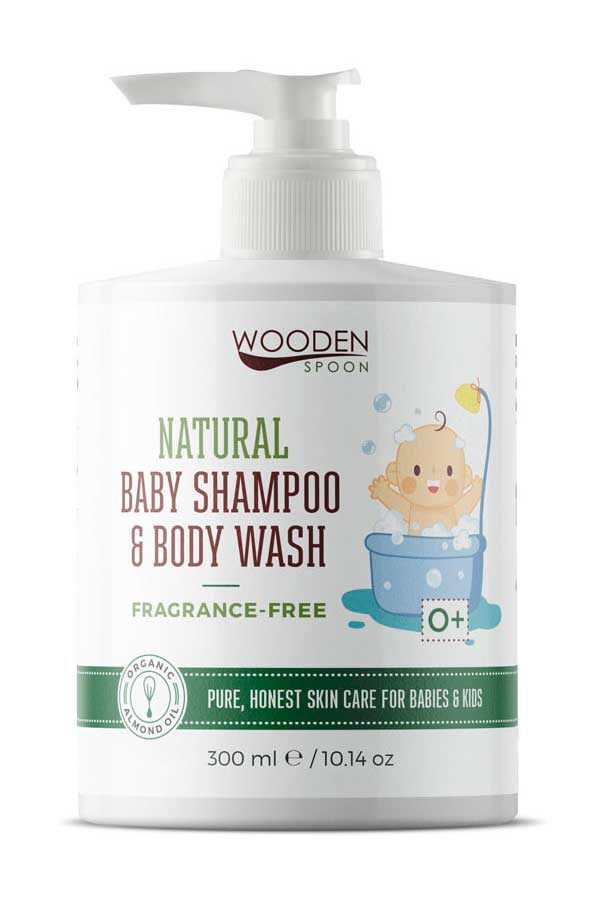 БЕБЕШКИ НАТУРАЛЕН ШАМПОАН ЗА КОСА И ТЯЛО Wooden Spoon (БЕЗ АРОМАТ) 300ml.