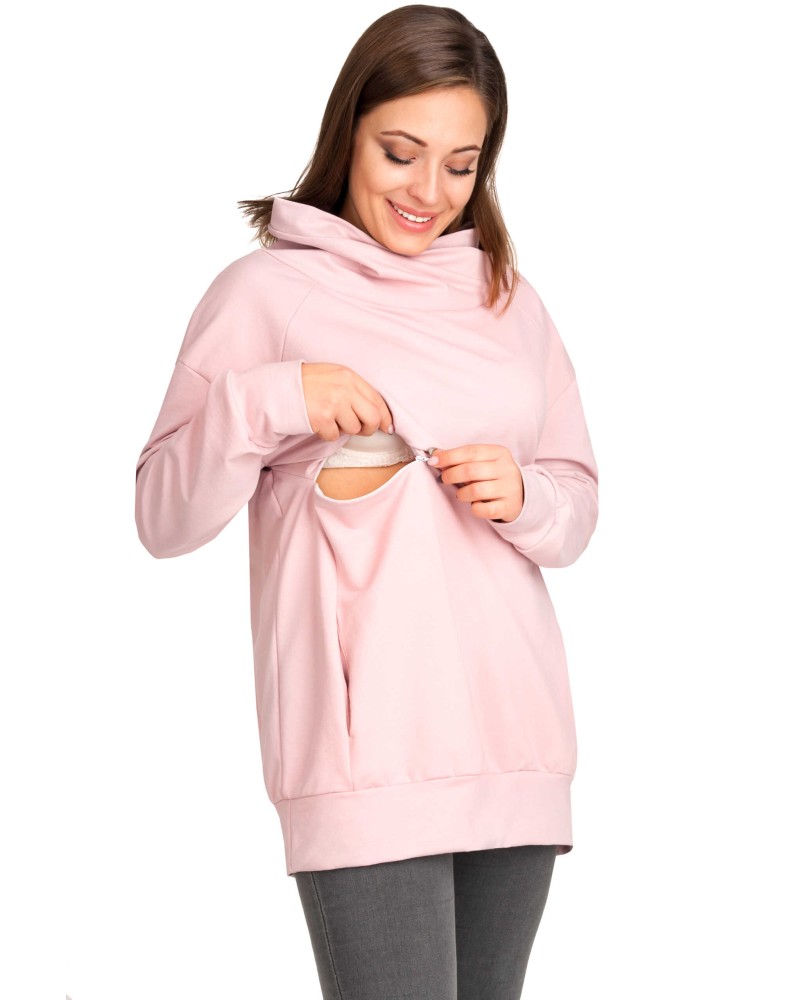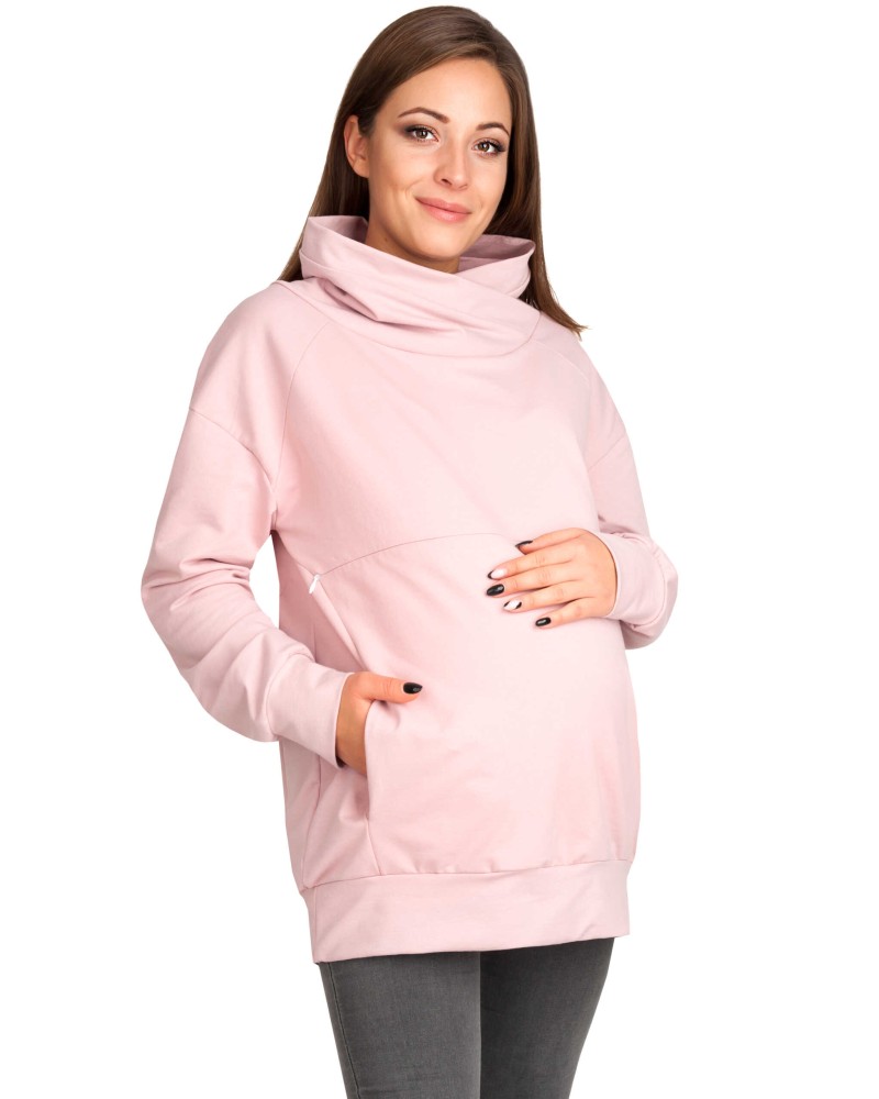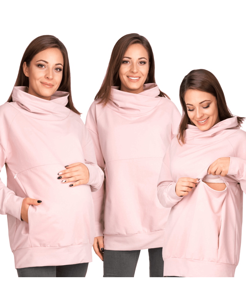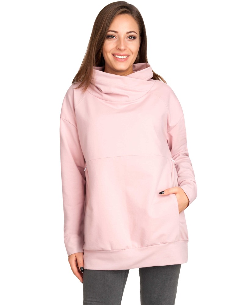 Ватиран суитшърт за бременни и кърмачки пудра, поло яка