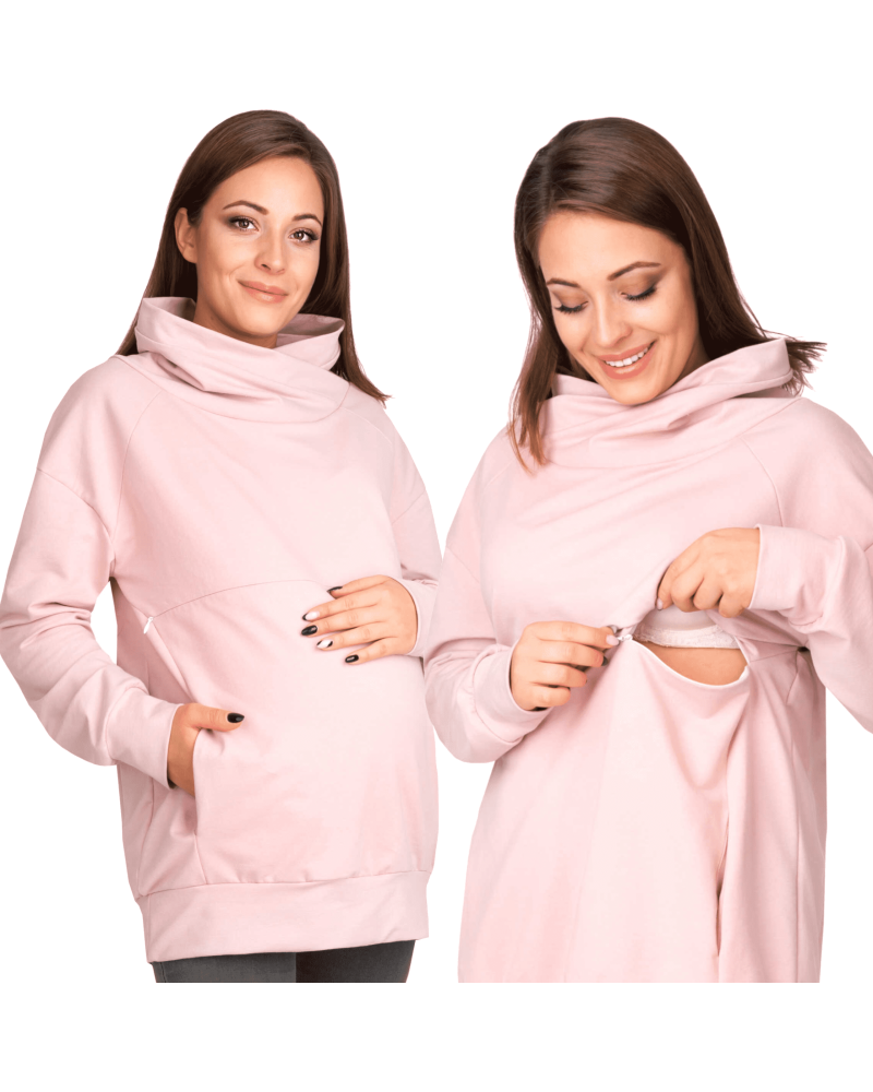 Суитшърт за бременни и кърмачки с висока яка Мека и еластична памучна материя, която се усеща като втора кожа. Широка долна част и свободна кройка – подходящ за късна бременност и със скрити ципове за кърмене.