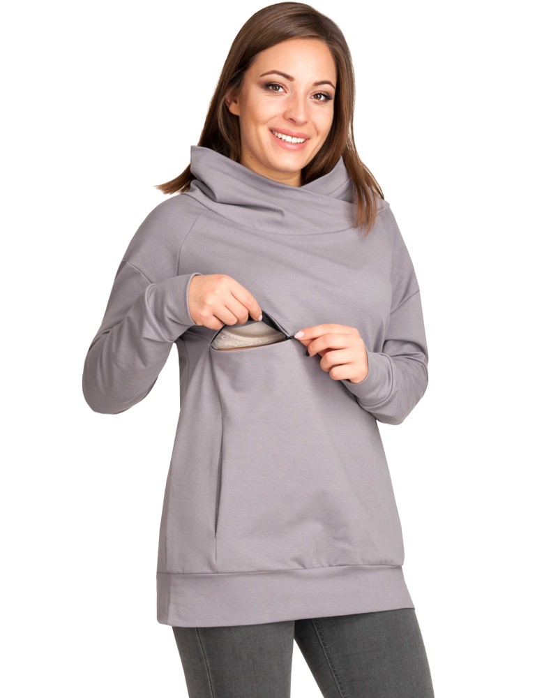 Суитшърт за бременни и кърмачки с висока яка Мека и еластична памучна материя, която се усеща като втора кожа. Широка долна част и свободна кройка – подходящ за късна бременност и със скрити ципове за кърмене.