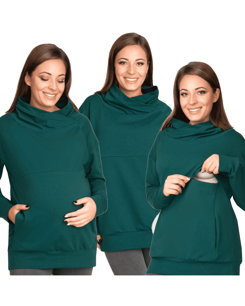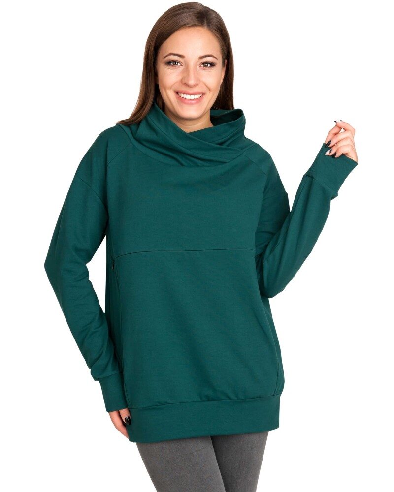 Суитшърт за бременни и кърмачки с висока яка Мека и еластична памучна материя, която се усеща като втора кожа. Широка долна част и свободна кройка – подходящ за късна бременност и със скрити ципове за кърмене.