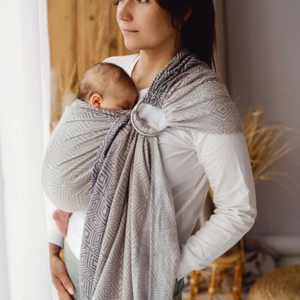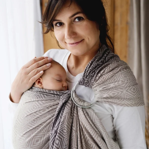 Слинговете с халки са бърз, лек и лесен начин за носене на бебе. Голямо предимство при тях е,че не трябва да правите връзвания. Просто трябва да прекарате плата правилно през халките, слагате бебчето и затягате според инструкциите.