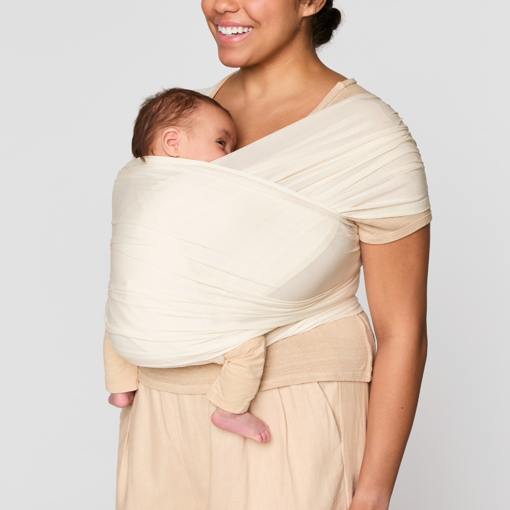 Еластичен слинг New Aura на Ergobaby Suistainable Knit Mesh КРЕМ дишаща мрежеста материя