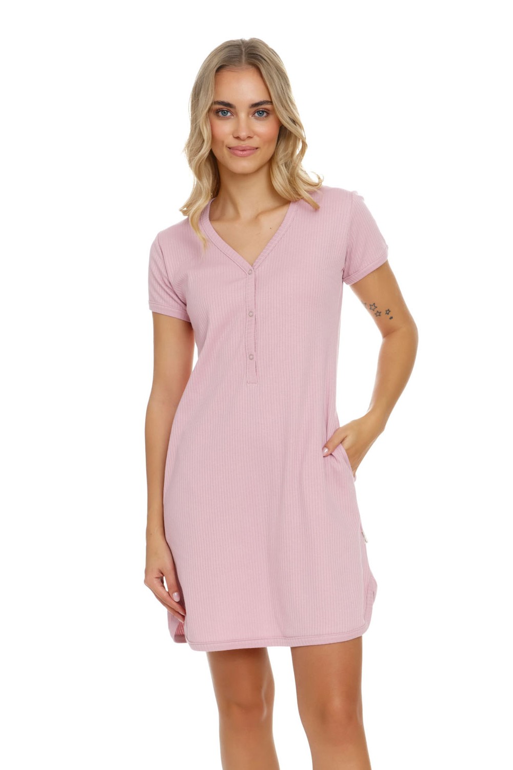 Красива нощница за бременни и кърмачки .Нежна памучна материя , която се усеща като втора кожа. Женствена кройка с копчета за лесно кърмене във всяка една позиция. Подходяща както за последните дни на бременността и за родилното , така и след това.