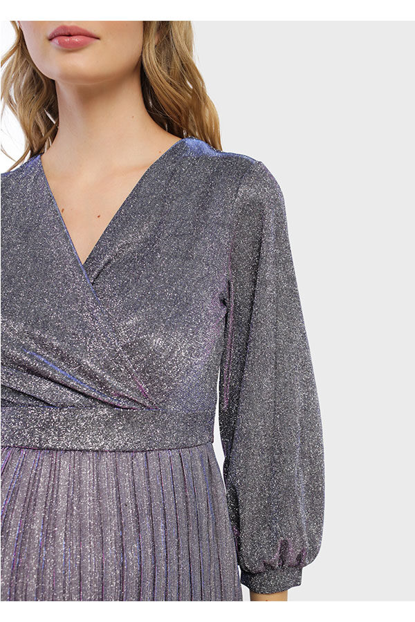 Официална рокля за бременни и кърмещи „Хала“ с коланче лилава брокат последни