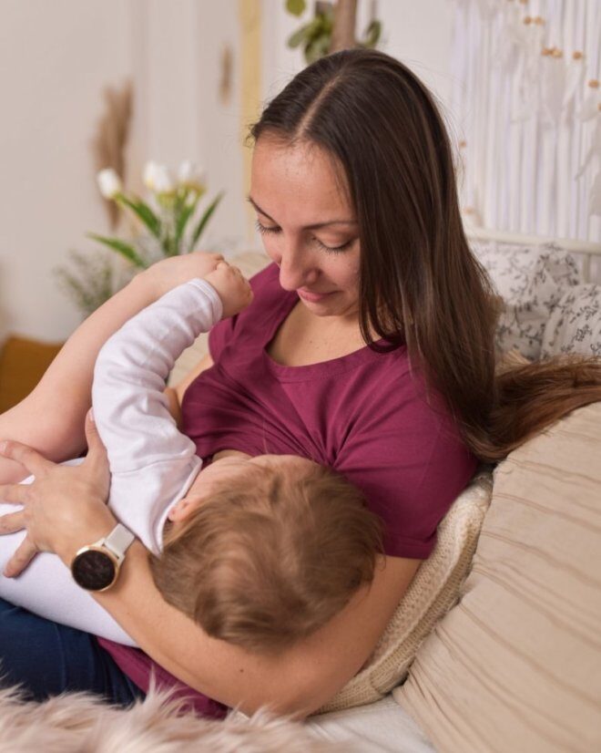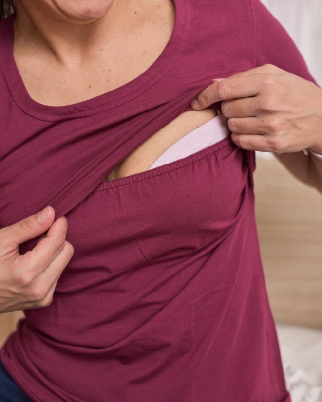 Памучна блуза за бременни и кърмачки , Тениска за кърмене циклама