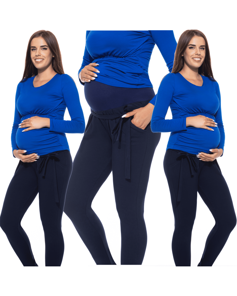 Спортен панталон за бременни с висока платка за корема и коланче СИН