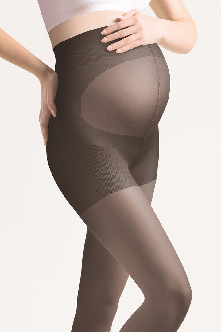 Чорапогащи за бременни със специално анатомично уширение,което нежно обхваща и поддържа корема и „расте“ заедно с него.Подсилена част в областта на кръста ,с цел намали напрежението в тази зона. Омекотена материя с Алое Вера екстракт