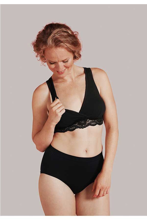 Carriwell сутиен за кърмене Памучно бюстие за кърмене черно с дантела