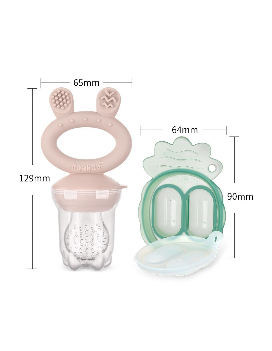 Haakaa Сет силиконова 2в1 чесалка за зъби , мрежа за плодове и форма за замразяване