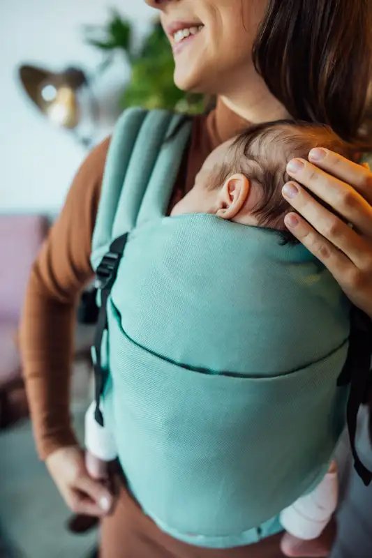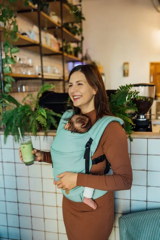 От името става ясно, че дизайнът е много изчистен, а усещането при първата среща с този модел е за лека, мека и наистина компактна носилка. Определено е много нежна, като усещане и за бебето и за родителя, но същевременно достатъчно стабилна, за да служи вярно дълго време и особено при пораснали деца.