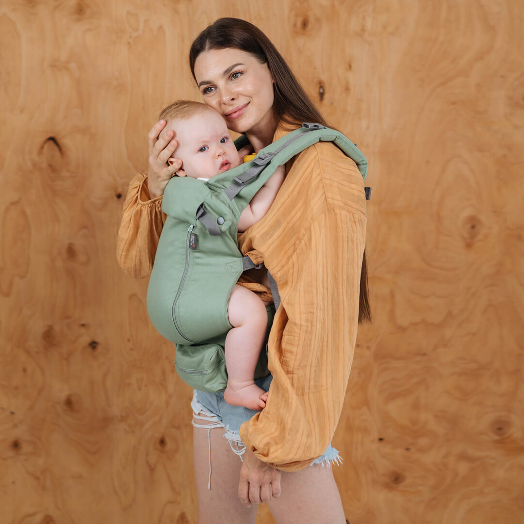 - Позиции на носене: Предно (с лице към родителя), на гръб и на хълбок.