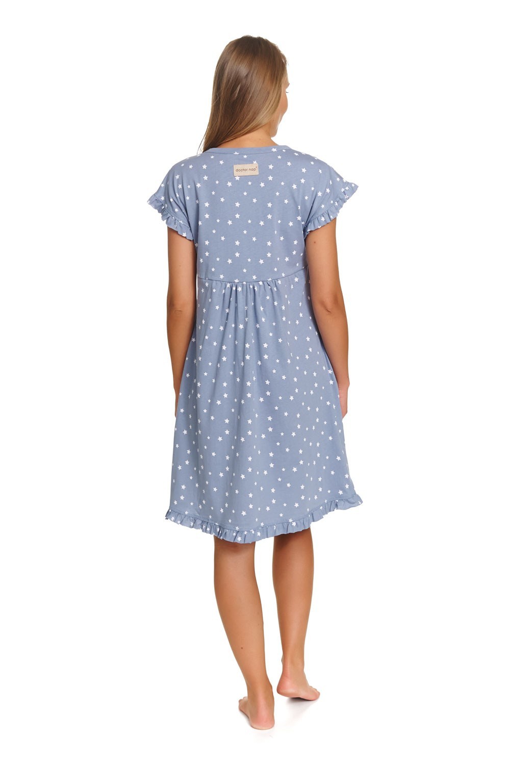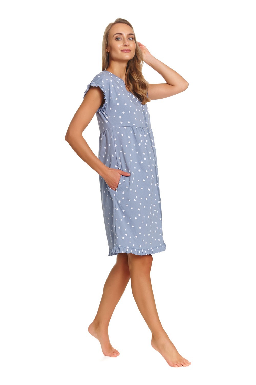 Нощница за бременни и кърмачки 100%памук , копчета , бебешко синя , звезди