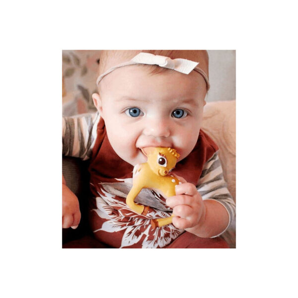 Направени от 100%естествен каучук от дърво Хевея , изляти като цяло парче, за да не може да навлизат бактерии и за да не може да бъде отхапана/отделена частица. Всяка гризалка е ръчно оцветена с натурални пигменти и представлява сама по себе си уникат, защото шарката не може да бъде повторена на 100%.  Био разградими и напълно безвердни за бебетата без PVC(пластмаса) , без BPA( бисфенол) , без фталати и нитрозамини.
