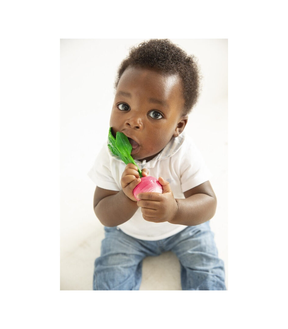 Oli&Carol Ramona Radish 2в1 Многофункционална чесалка за зъби 0+ и играчка за баня 100%естествен каучук