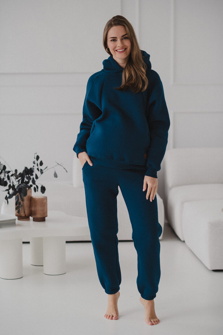 Дебел ватиран спортен панталон, долнище анцуг бременни с платка за корема морско синьо